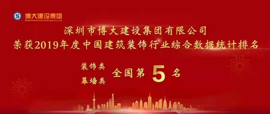 熱烈祝賀博大躍居中國建筑裝飾行業(yè)百強(qiáng)第五名!
